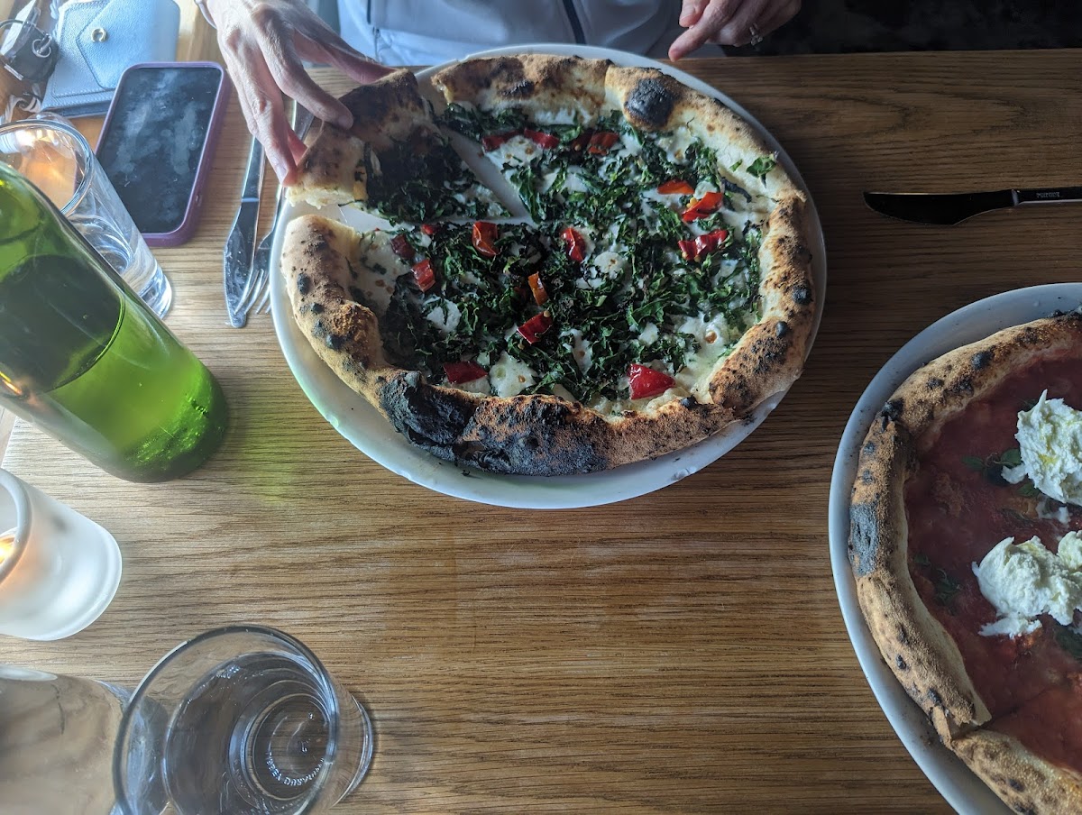 The heart of the menu is the naturally leavened crust. Sourdough fermentation isn’t just a trend; food science backs it up. Studies from institutions like Harvard School of Public Health point out that long fermentation can improve digestibility and flavor by breaking down complex carbohydrates. You can taste that difference here. The crust comes out blistered from a high-heat oven, airy on the inside, and lightly crisp on the outside, with a subtle tang that doesn’t overpower the toppings. Compared to faster-rise doughs used in many pizzerias, this one feels lighter and more balanced.